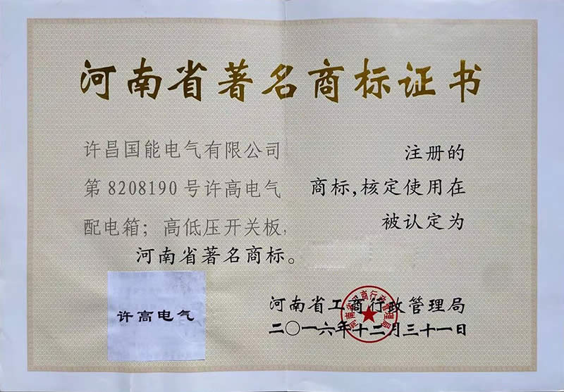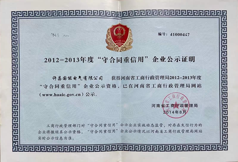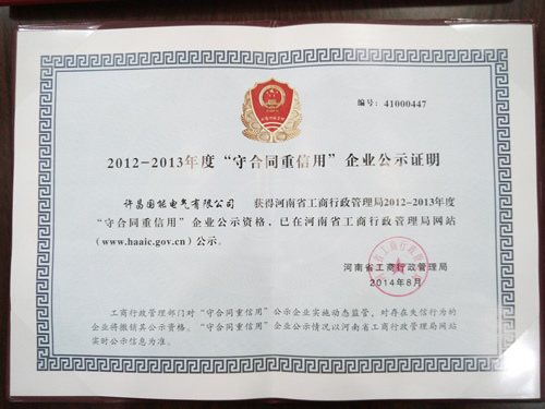 资质荣誉-河南高压开关设备_低压开关设备_箱变系列_户外高压断路器--许昌国能电气有限公司
