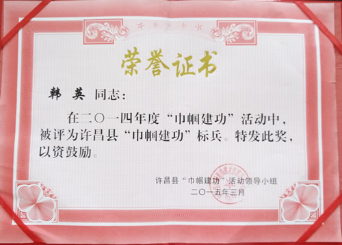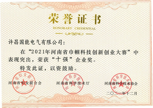 河南省巾帼科技创新大赛十强证书