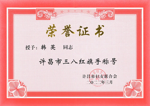 市三八红旗手荣誉证书